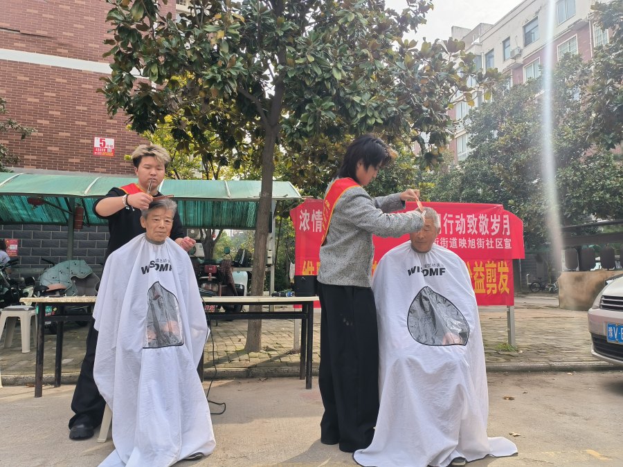 映旭街社区携手维思顿美发连锁店开展“温暖重阳 爱心义剪”志愿服务活动。现场暖意融融,社区工作人员与理发师们提前抵达,细致完成工具消毒、座椅布置等准备工作。面对前来理发的老年居民,理发师们耐心细致地询问每一位老人的发型需求,根据他们的年龄、脸型和个人喜好精心设计修剪。剪发过程中,志愿者们还与老人亲切唠家常,关心其生活状况、叮嘱日常注意事项,现场欢声笑语不断。对于行动不便的独居老人,社区工作人员提前上门沟通,专门安排志愿者提供上门义剪服务,确保关怀覆盖每一位有需要的老人。