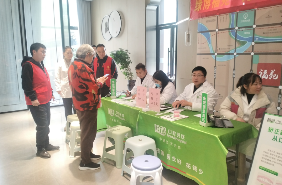 与此同时,植得口腔的医生团队也忙碌地为居民进行口腔检查,包括牙齿健康评估、牙周病筛查等基础项目,并提供口腔保健知识宣传。医生们耐心解答居民关于假牙维护、口腔清洁等方面的问题,建议定期检查的重要性,强调良好的口腔习惯对全身健康的影响。