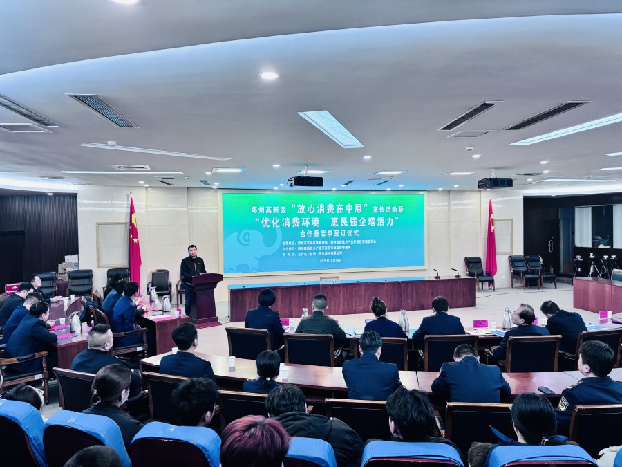 当天,郑州高新区管委会多功能厅座无虚席,气氛热烈,一场以“放心消费在中原”为主题的宣传活动暨“优化消费环境 惠民强企增活力”合作备忘录签订仪式在此举行。活动由郑州市市场监管局与高新区管委会联合指导,高新区市场监管局精心策划主办,旨在通过创新模式优化消费环境,激发市场活力,为消费者与企业搭建互信共赢的桥梁。
