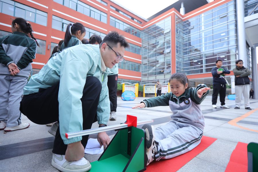 网球现场教学之余,教练们还带领同学们体验了“健郑小将”青少年运动成长体测,用动态捕捉设备,对学生的平衡、协调、速度、灵敏等核心身体素质进行测评并生成专属报告。“通过速度、灵敏、平衡感等几个维度,看一下我们孩子们整体的身体素质。一个是发现孩子们的一些问题,及时地介入去预防;再一个就是发掘孩子的体育天赋,看看他们到底适合哪种运动项目。”