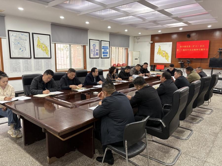 10月29日上午,中牟新区韩寺镇召开党委(扩大)会议,专题传达学习党的二十届四中全会精神,就抓好贯彻落实全会精神进行安排部署,会议由镇党委书记王坤主持,全体班子成员、各村党支部书记参加。