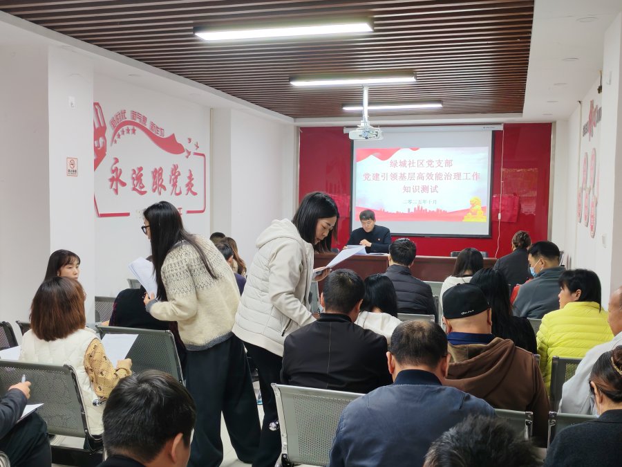 为进一步深化党建引领基层高效能治理,检验和提升社区党员及工作人员的理论素养与业务能力,10月29日,中牟新区广惠街街道绿城社区结合10月份主题党日活动,精心组织开展“党建引领基层高效能治理工作应知应会知识测试”。社区辖区内党员及全体社区工作人员共同参加了此次测试。