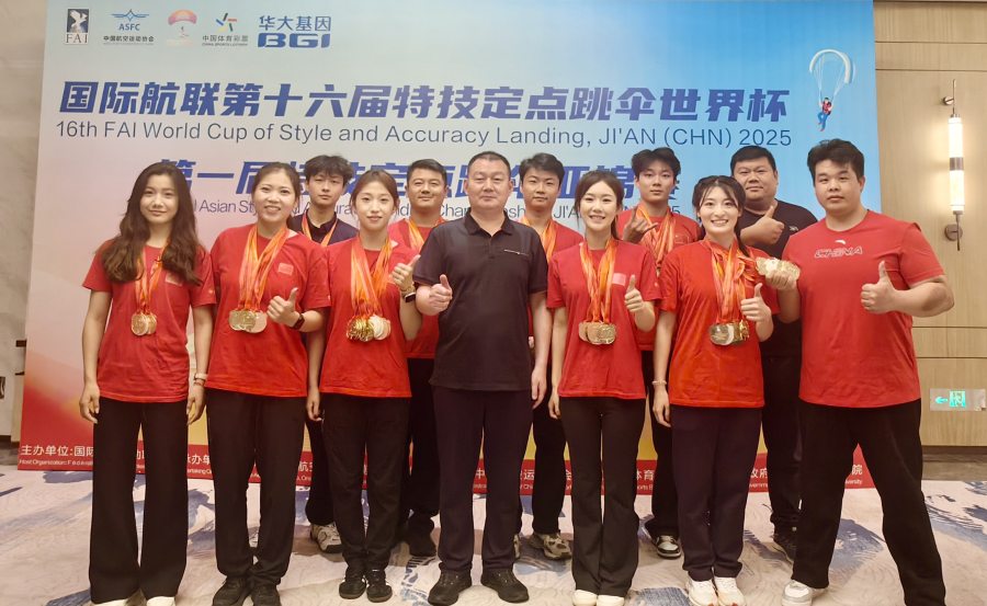 张开元、魏高琦、于瑞龙三名河南健儿携手曾亚辉、刘飒组成的中国跳伞队一队,在比赛中展现出极强的抗压能力,队伍一度处于追赶态势,但队员们凭借稳定的心理素质与精湛的技术,在关键轮次实现逆风翻盘。最终,他们以8轮累计32厘米的精准成绩拿下男子集体定点跳伞项目的金牌,并成功斩获本届赛事首金。张开元、魏高琦也实现了首夺世界冠军的梦想;此外,于瑞龙在本届赛事中夺得中国跳伞首个男子个人定点项目世界冠军同时获得亚锦赛冠军;邢雅萍、李怡瑶、张玲、吕悦莹作为女子集体定点项目运动员,成功卫冕女子集体定点项目及女子国家团体世界冠军,吕悦莹也实现了首夺世界冠军的梦想;此外,于瑞龙、李怡瑶还分别获得男女特技项目和男女个人全能世界冠军。