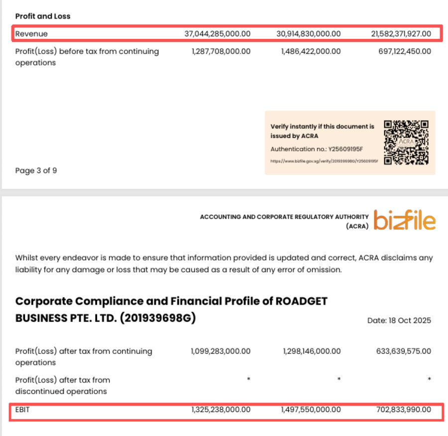 根据新加坡会计与企业管理局(ACRA)披露的文件,2022年—2024年,SHEIN新加坡公司的营收分别是215.82亿美元、309.15亿美元和370.44亿美元。息税前利润(EBIT)分别为7.03亿美元、14.98亿美元和13.25亿美元。