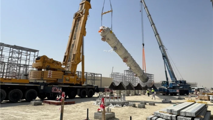 中国化学十一化建第九工程公司沙特项目首台设备成功吊装