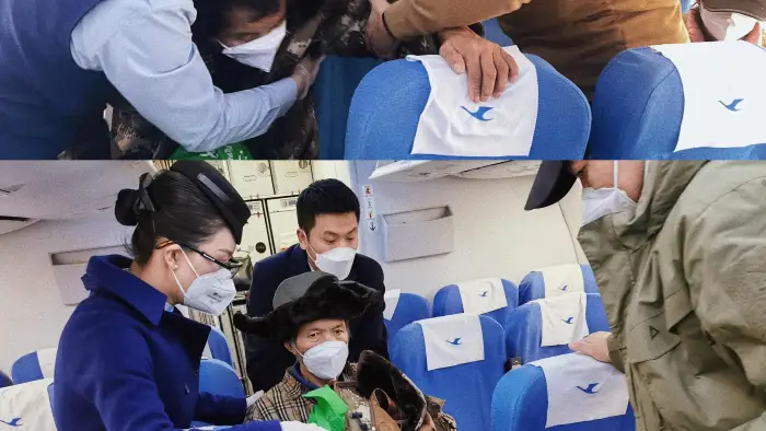 机组乘务员在空中悉心照料受伤旅客,践行厦航服务精神