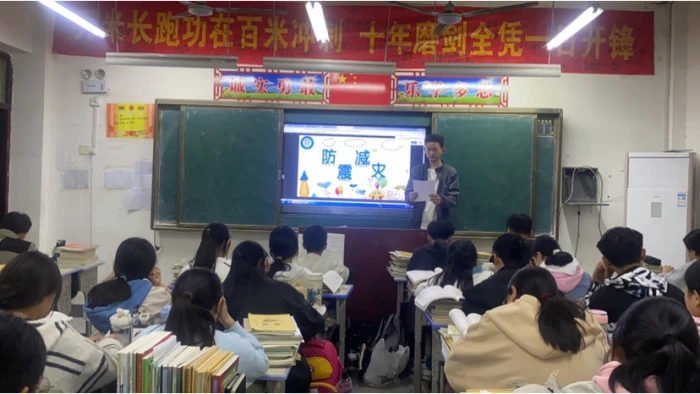 《大河屯一中成功开展防震救灾主题班会》