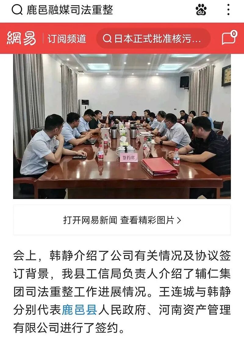 2021年6月,鹿邑县政府成立了辅仁药业集团风险化解工作专班;到了今年7月初,辅仁药业集团的登记机关由河南省市场监管局变更为周口市市场监管局,总经理换人;而后的7月21日,鹿邑县政府就和河南资产管理有限公司签订了顾问服务协议,目标直指辅仁药业集团的“司法重整事宜”。