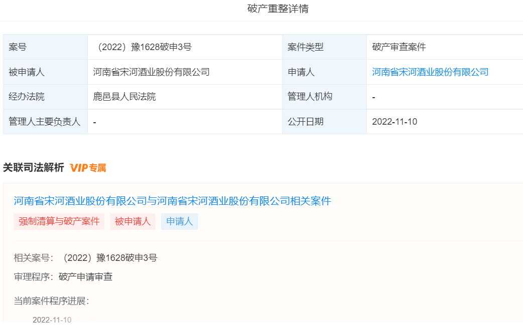 经长期筹备,宋河酒业到鹿邑法院自己把自己诉了:要破产重整。