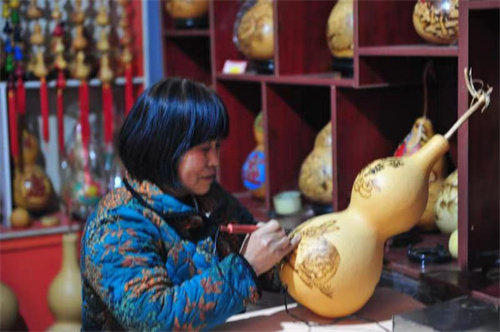 葫芦是中华民族最早的吉祥物之一,其谐音“护禄”“福禄”,自带吉祥的寓意,受到人们的广泛喜爱。在河南省三门峡市城乡一体化示范区阳店镇东水头村,就有一位专注葫芦雕刻艺人——郭锻婷 ,其制作方法采用民间手工镂空传统工艺,借葫芦之型,福禄之灵气,用刻、钻、挖、凿、画、贴、镂、描、等手法和二十多道手法完成。