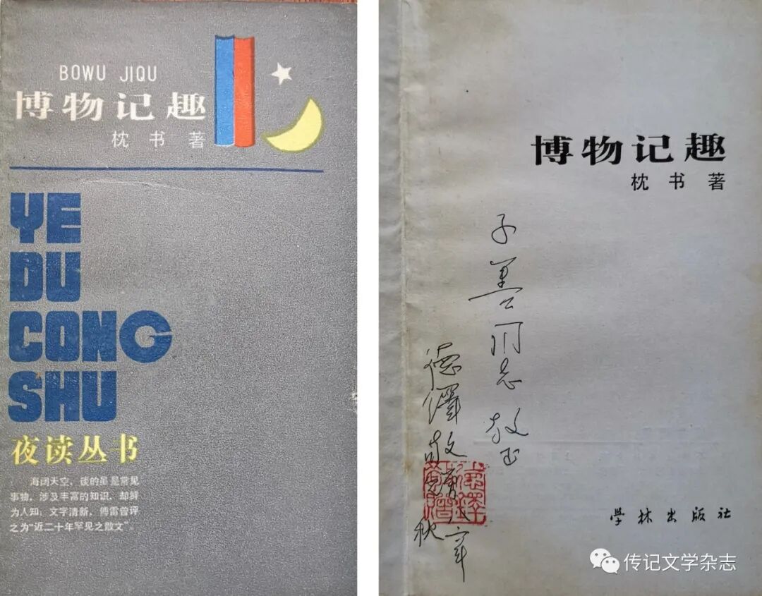 这13种著作里,除了《科技史文集》和《文心雕同》因是他的学术著述,《博物识小》《漫游博物世界》和《物趣》因他已经逝世而署他的本名吴德铎外,其他8种均署名“枕书”[4]。“枕书”的“博物识小”系列驰名海内外,诚可信矣。至于为何署名“枕书”,他自己也有生动的解释: