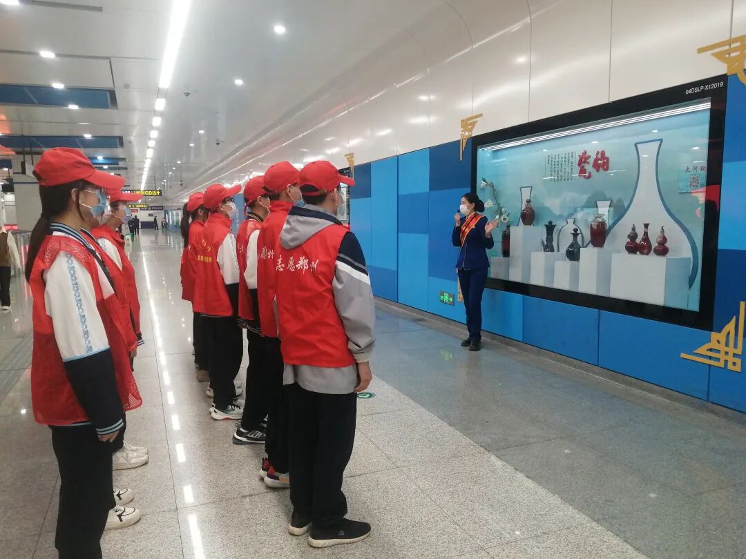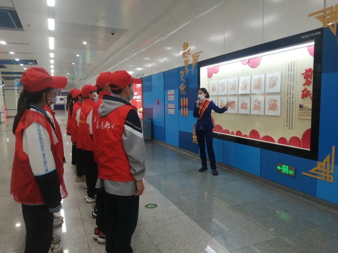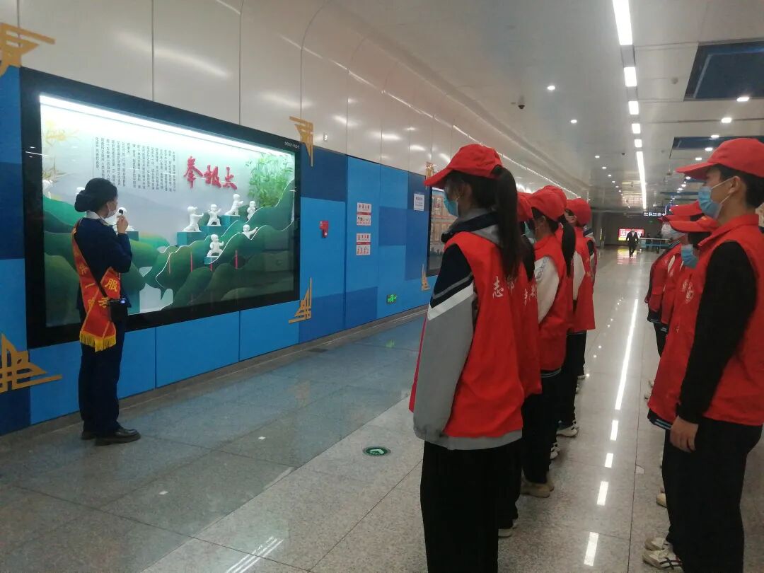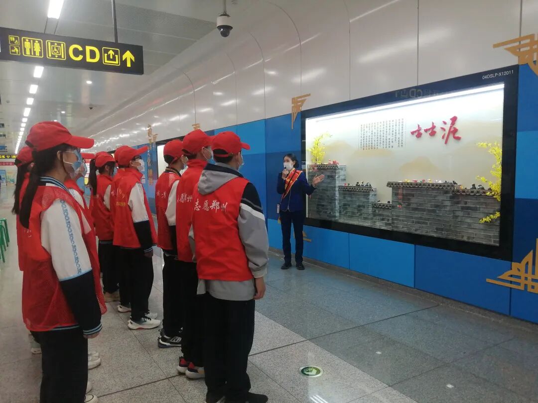 活动人员在车控室前主题墙集合,由工作人员简单介绍车站情况,主题车站理念,随后引导人员前往“趣知乐园”进行趣享文化知识讲解。