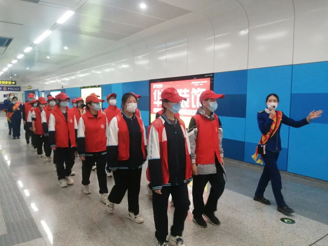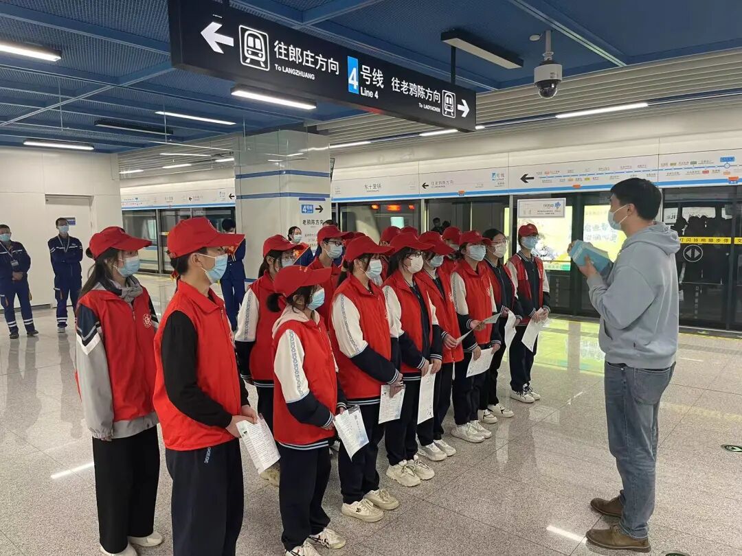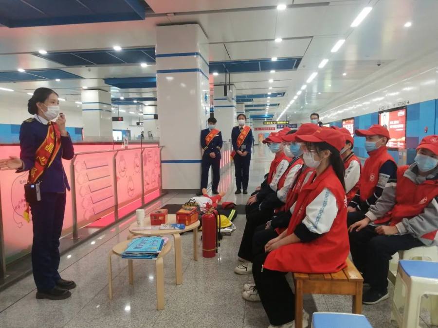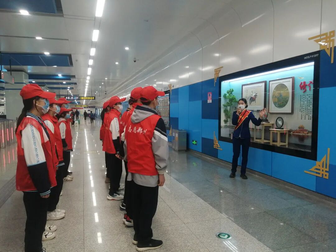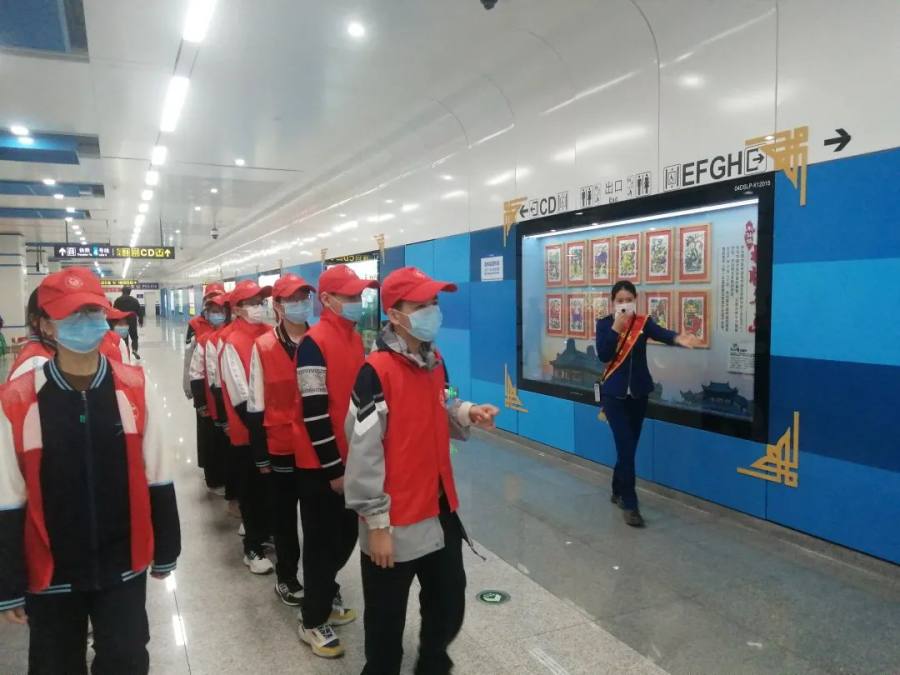 活动人员在车控室前主题墙集合,由工作人员简单介绍车站情况,主题车站理念,随后引导人员前往“趣知乐园”进行趣享文化知识讲解。