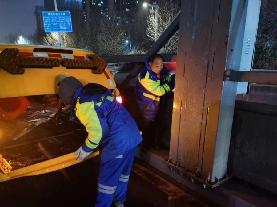 有备无患,枕戈待旦。在这次降雪期间,为及时应对各种突发情况以及可能出现的天气变化,项目一线遵循统筹统调,科学安排人员车辆、快速填装融雪物资、管辖区域值班值守、市政设施提升高度、数据信息双向互通等各类工作在紧张有序地推进之中,齐心协力打造出了一条条“平安路”、“暖心路”。
