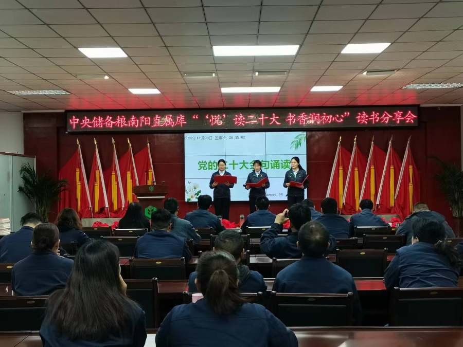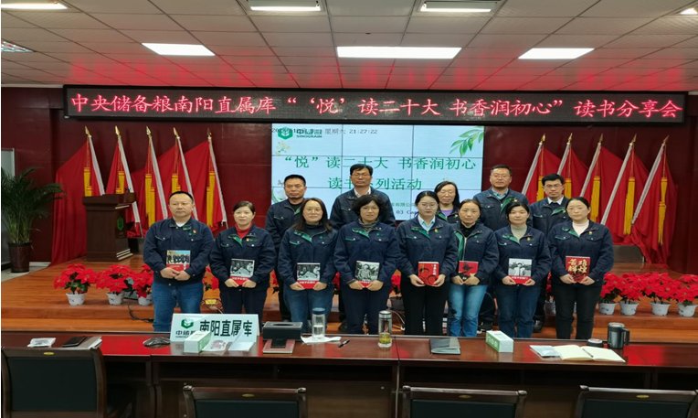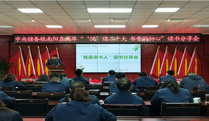 腹有诗书气自华,最是书香能致远。南阳直属库党委书记王玉生在活动后进行总结讲话,鼓励全体员工要紧密结合学习贯彻党的二十大精神、结合开展学习贯彻习近平新时代中国特色社会主义思想主题教育,把读书学习当成一种习惯,学思践悟统筹推进,将书中所学内化于心、外化于行,高质量落实“二次创业”各项目标任务。此次“‘悦’读二十大 书香润初心”系列读书活动的成功举办,推动了学习宣传贯彻党的二十大精神走深走实,营造了“爱读书、读好书、善读书”的良好氛围。全体干部员工纷纷表示,要将阅读作为一种生活追求、一种工作责任,通过读书不断充实自己、升华自己,让“书香”在“刷屏”时代更加扑鼻;更要以二十大精神为引领,脚踏实地履职尽责,在中储粮“二次创业”的新征程上,以实际行动谱写学懂弄通、学思践悟、学以致用的新篇章。