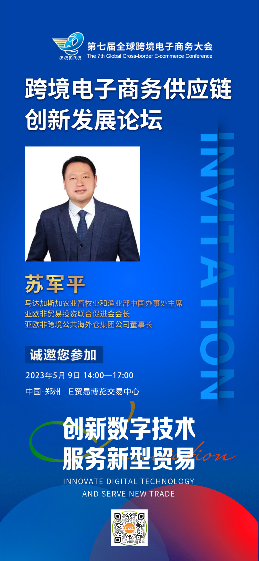 Mr. Su Junping, President of the China Office of the Ministry of Agriculture, Livestock and Fisheries of Madagascar, cordially invites you to attend the 7th Global Cross-border E-commerce Conference! Let's meet in Zhengzhou on May 9th to explore new opportunities for cross-border cooperation together!