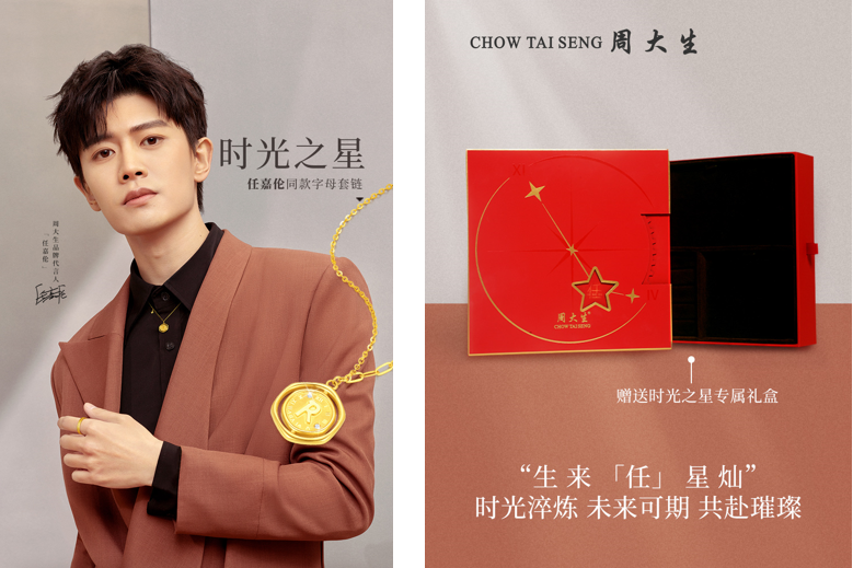 再以“时光之星”产品系列为例,周大生通过图文、短视频和直播内容重点解读产品设计的巧思,比如它可以翻转时钟造型为灵感,时间指向4点11分(任嘉伦生日),产品背面为白羊星座(任嘉伦星座),以及深度解读时光之星的含义,即经过时光淬炼终成耀眼新星,寓意成长、蜕变,吸引任嘉伦粉丝、时尚和送礼人群下单。