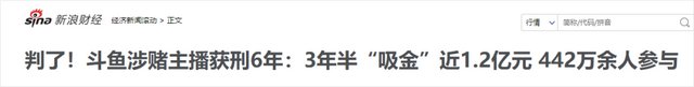 2022年,四川省都江堰市法院作出判决,斗鱼2名涉赌主播被判有期徒刑6年,共处罚金165万。