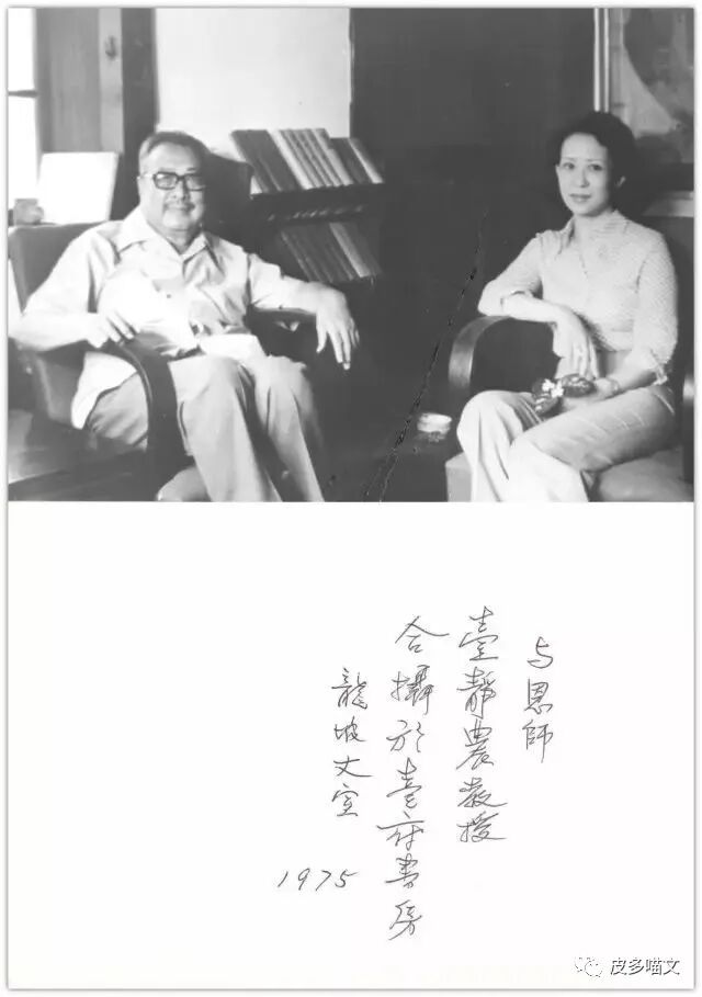 林文月:“与恩师台静农教授合摄于台府书房龙坡丈室,1975”