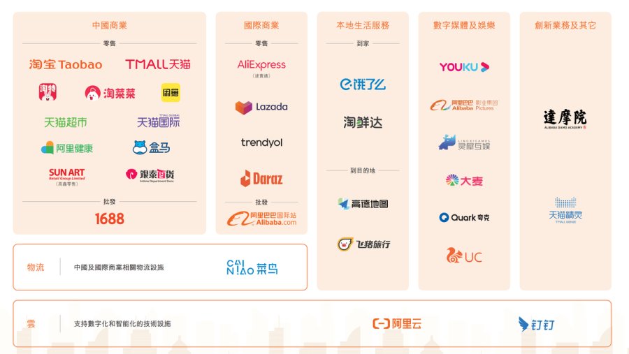 (阿里巴巴集团截至2022年3月的业务架构图)