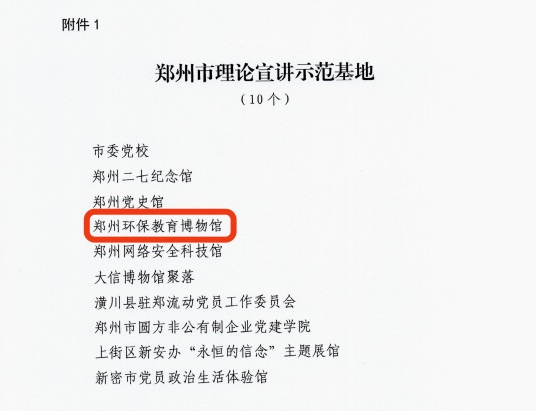 近日,中共郑州市委宣传部下发《关于命名理论宣讲示范基地和百姓宣讲示范点的通报》,郑州公用集团郑州环保教育博物馆获批“郑州市理论宣讲示范基地”。