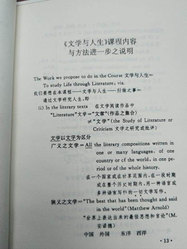 这几天,一直在读吴宓先生的《文学与人生》,是他上世纪三十年清华大学国学院时为研究生或高年级的学生开设的一门选修课的讲义。不再讲授此课时,吴宓先生曾亲手整理成两册,“文革”时期交西南师范学院毕业一学生代为保管,没想到这位学生后来竟不肯归还。吴宓先生的女儿吴学昭只能根据清华大学时的讲义整理,肯定没有吴宓先生自己整理的那么顺序清晰,体系完整。而是,得以出版也并不容易,印数肯定不多。比如老楚同志正在阅读的这本书就是盗版书。一本中外文混杂,图表和标识非课堂讲解,让人几乎无法看懂,类似《奇门遁甲》的天书,还有人盗版,也是吴宓先生不幸之中唯余的一点幸运。只是吴宓先生远远没有刘基先生、伯温那种进退自由的政治智慧,比如其公开反对批孔,就表现出一位知识分子方孝儒的刚正与迂腐。某种程度上讲,这种经历也知行合一地契合了吴密先生作为一位教育家的理想追求涵养心性,崇真去伪,培植道德,转移风俗,造成大同世界,促进真正文明。
