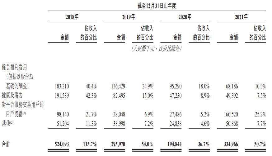 连年亏损,与快狗打车持续投入大额的营销费用息息相关。2018年至2022年,快狗打车的销售及营销费用分别为5.24亿元、2.96亿元、1.95亿元、3.35亿元和3.21亿元,分别占当期收入的115.7%、54.0%、36.7%、50.7%和41.5%。