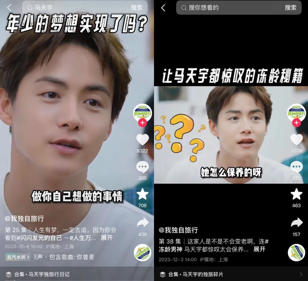 也正是因为这样的追求,正片完结后,《独旅》官抖账号的更新并没有停止。目前,素人旅行挑战的切片、二创、直播都在持续进行,助力着IP的生命力的持续生长。