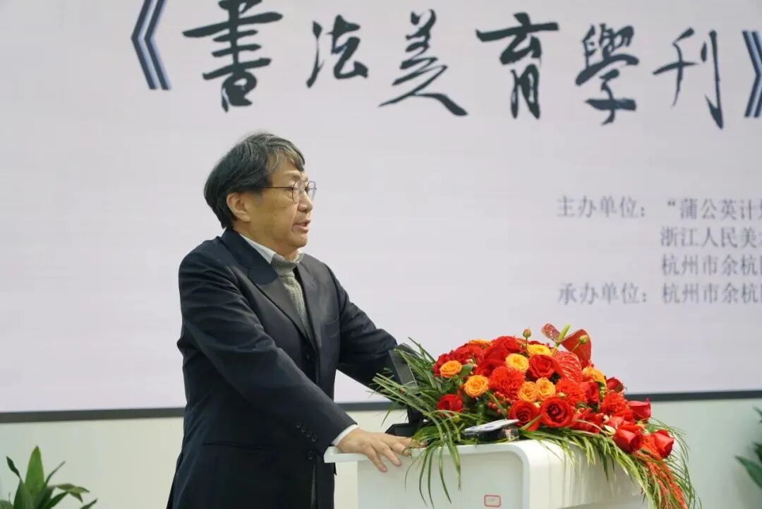 发布会上,中国文联副主席、西泠印社副社长兼秘书长、全国“蒲公英计划”教育联盟主席陈振濂讲话,浙江日报报业集团党委委员、工会主任、妇联主席张彤代浙江日报报业集团社长、党委书记姜军致辞,余杭区政协副主席傅丽华致欢迎辞。首发式由浙江人民美术出版社管慧勇社长主持并介绍《学刊》有关情况。陈振濂、张彤、浙报艺术产业集团总经理、全国书法蒲公英教育联盟理事长邓志林,傅丽华,杭州市余杭区文化和广电旅游体育局党委书记、局长倪满芬为余杭区文化馆、五个镇街孵化基地、馆校基地等代表赠送《学刊》。