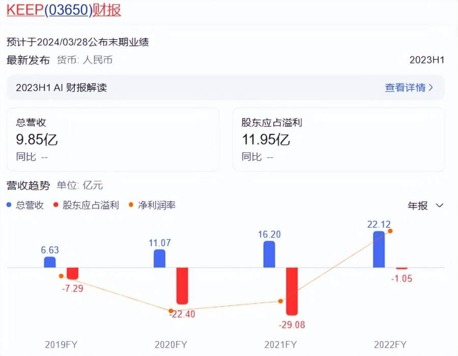 目前,Keep还未发布2023年财报,但是从之前几年的情况来看,Keep还未盈利。2019年到2022年,Keep始终在亏损,2021年亏损甚至扩大到29.08亿元,而那年的总营收却仅有16.20亿元。持续亏损的Keep急需降本增效,2019年,Keep曾进行裁员,如今裁撤Keepland或许也是为了降本。