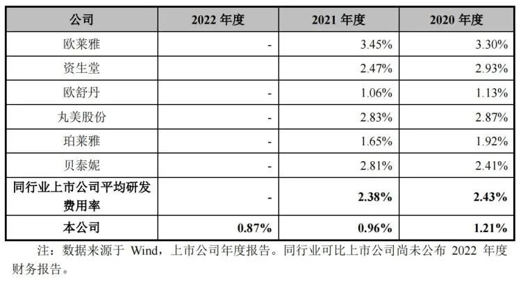 毛戈平上市之路的阻滞,除受投资方牵连外,长期以来研发费用投入偏低,没有形成足够宽的护城河也是原因之一。