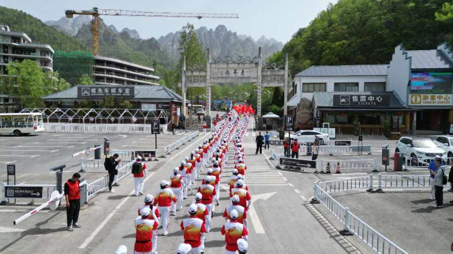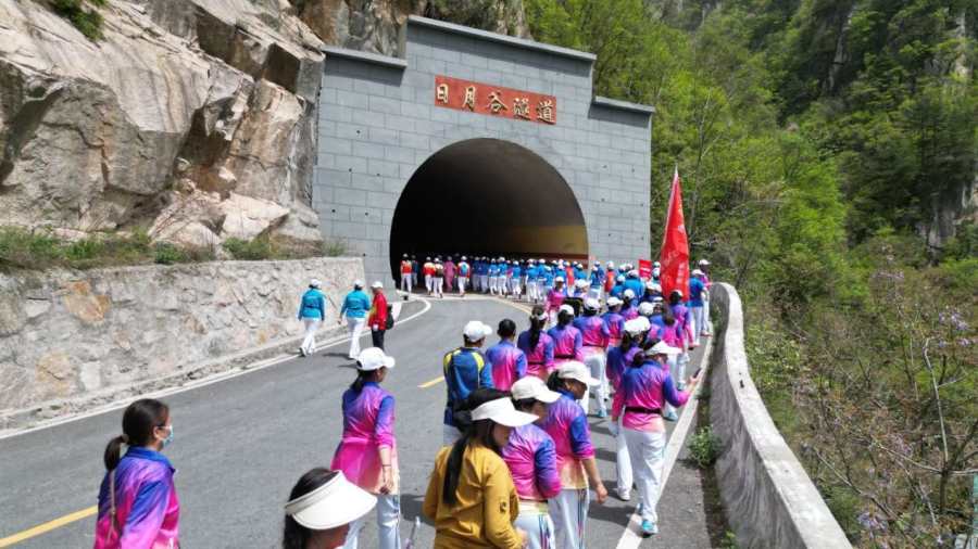上午10时,随着发令枪声响起,徒步方阵从太平镇东坪村文化广场出发,沿着旅游公路,穿过老界岭山门,最终到达老界岭骆驼峰营地,全长约4公里。