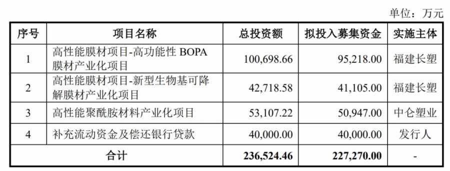因此,中仑新材本次IPO拟募集的22.73亿元,就主要用于投建高性能膜材项目—高功能性BOPA膜材产业化项目、高性能膜材项目—新型生物基可降解膜材产业化项目、高性能聚酰胺材料产业化项目等。