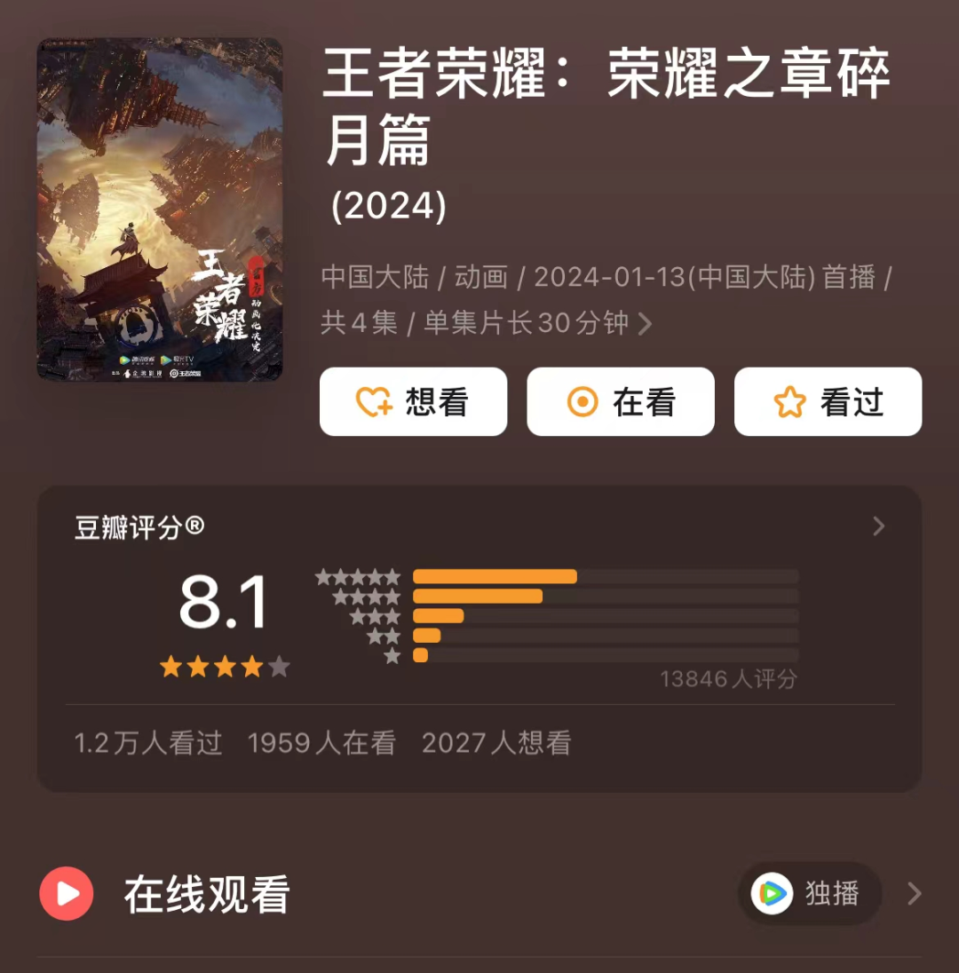 今年1月,《王者荣耀:荣耀之章碎月篇》先一步登录腾讯视频,与此同时,《王者万象棋》《王者荣耀:星之破晓》以及《王者荣耀:世界》三款游戏也早早放出了风声。