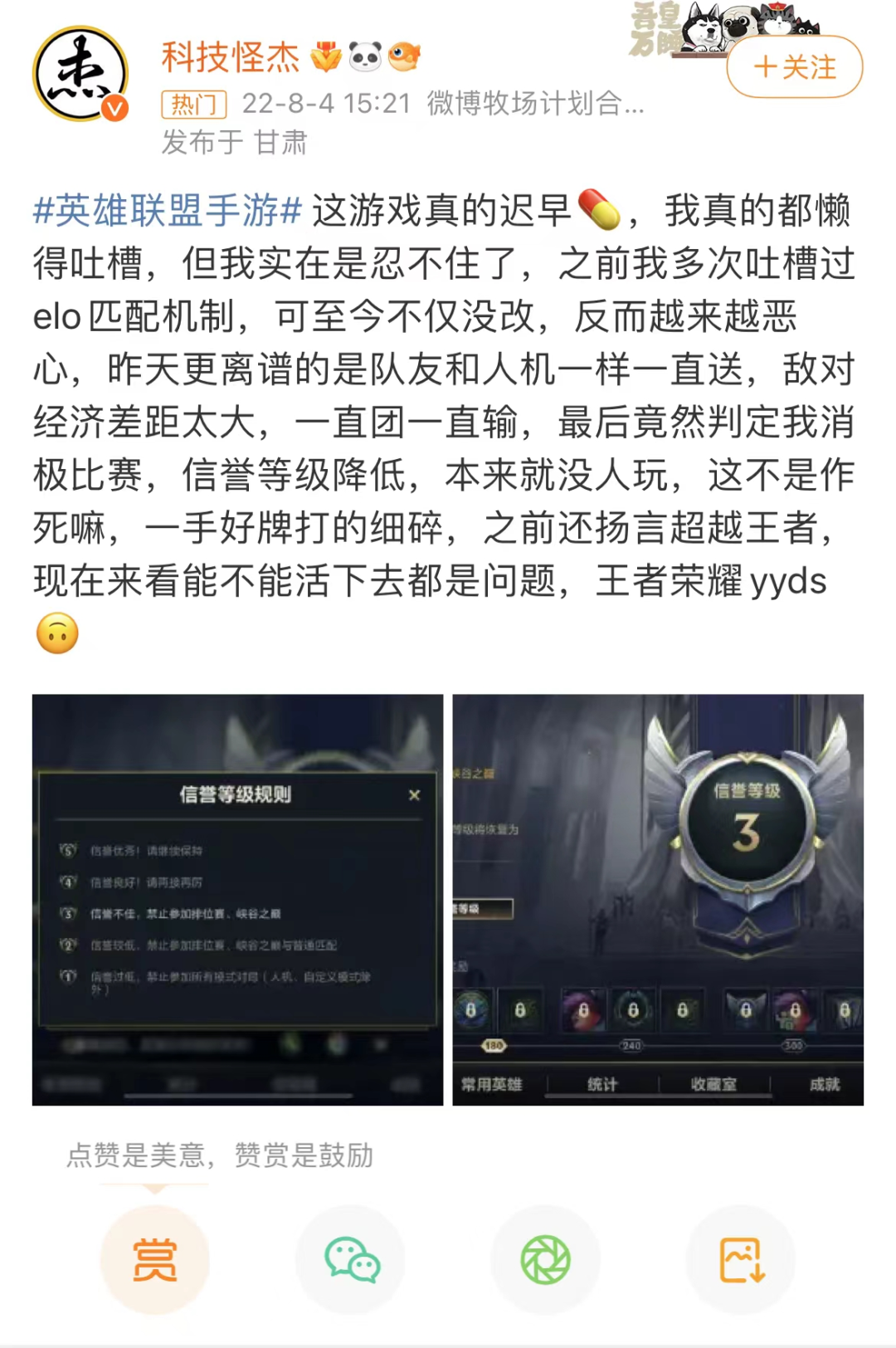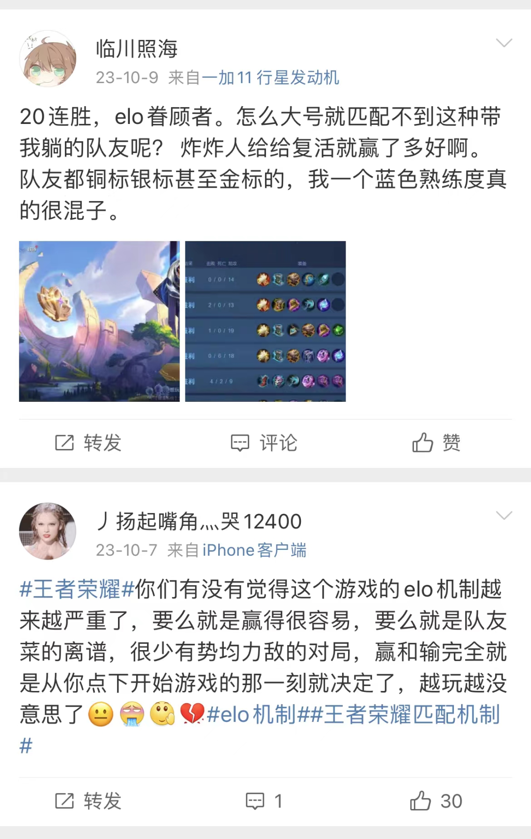 实际上,在“鸡爪流”玩法出现之前,玩家也对《王者荣耀》ELO机制有所不满。