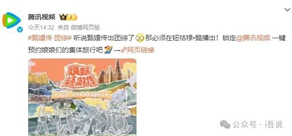早在今年4月份,《焕新环游传》带《甄嬛传》诸多主创录制的消息就在网上传出,但彼时网友对没有孙俪参与的阵容并不期待。5月初,鹅方突然官宣《焕新环游传》可以预约观看的消息,不仅节目官微释放物料,鹅官微也带话题发微博表示钮祜禄·鹅要做#甄嬛传 团综#。
