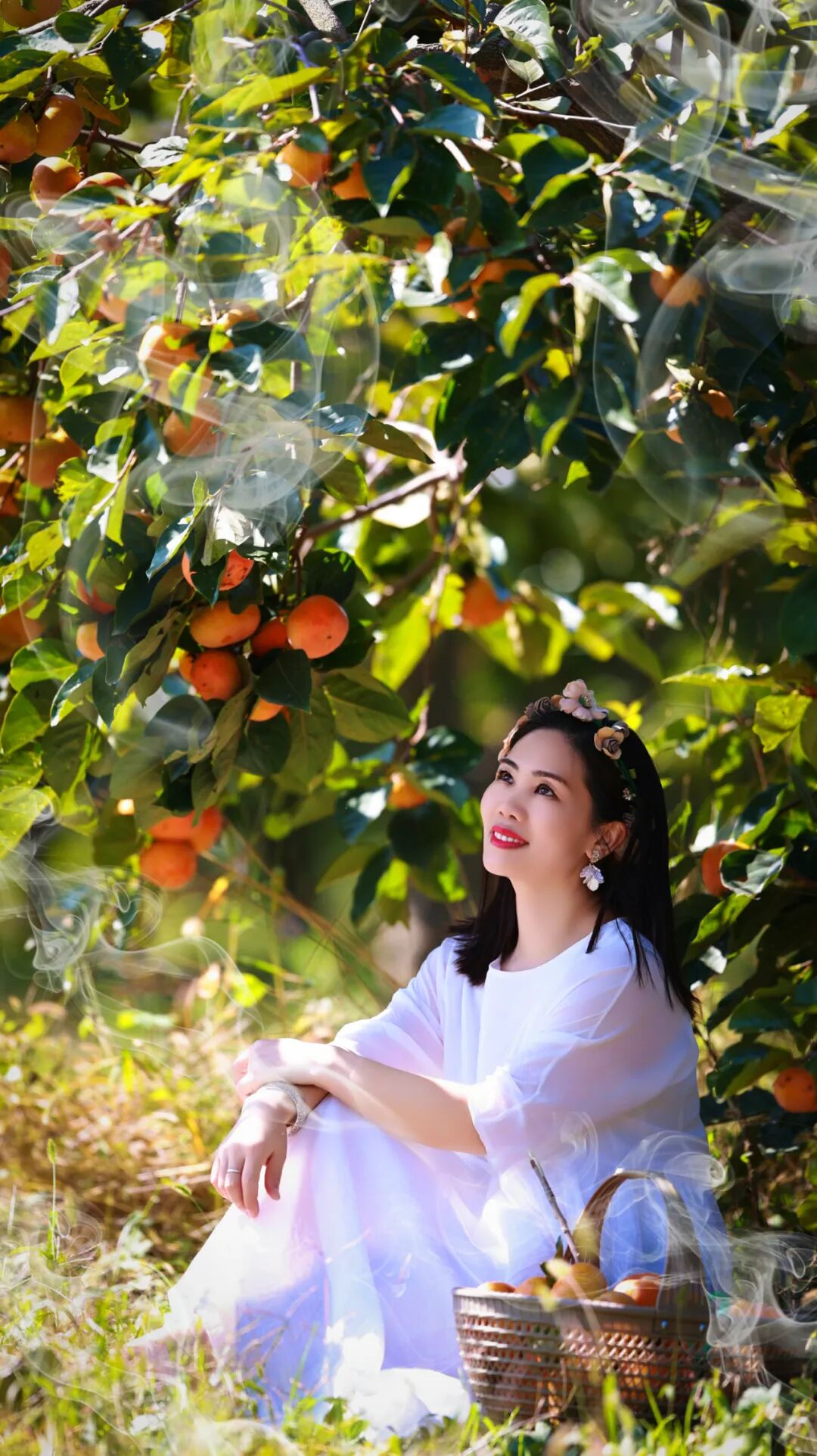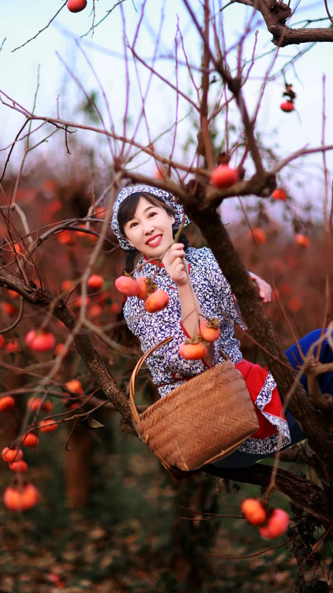 《红柿满园,美女如画,惊艳了整个秋天!》