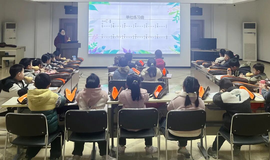 活动中,巾帼志愿者指导学员们认识曲谱,学生们兴趣十足,仔细聆听老师讲解每一个技法,在老师的示范引领下,大家纷纷拿起葫芦丝,尝试吹奏简单的音符。从最初的气息不稳、指法生疏,到逐渐能够吹出连贯的音调,每一个小小的进步都让他们脸上洋溢着喜悦与自豪。