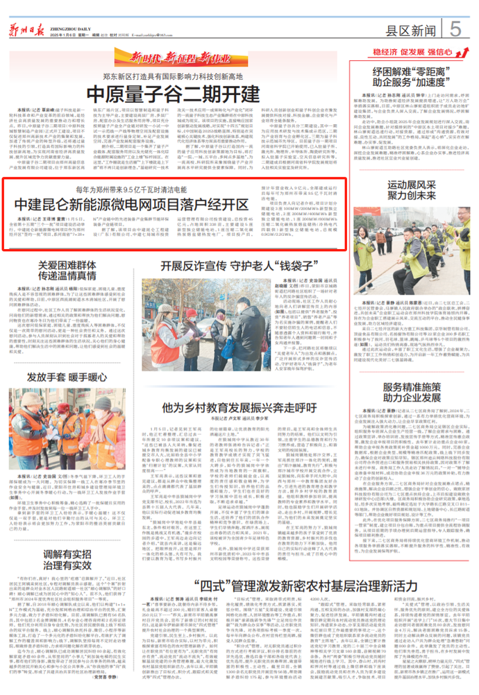 1月5日,全省第十五期“三个一批”项目建设活动举行。中建昆仑新能源微电网项目作为郑州经开区“签约一批”项目,系河南省“7+28+N”产业链中的先进装备产业集群节能环保装备产业链项目。