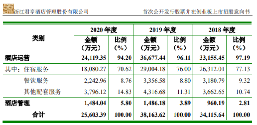 2016年挂牌新三板的时候,君亭酒店旗下21家店,直营店14家,受托管理店7家。营业收入主要来源是直营,委托管理占比百分点只有个位数。
