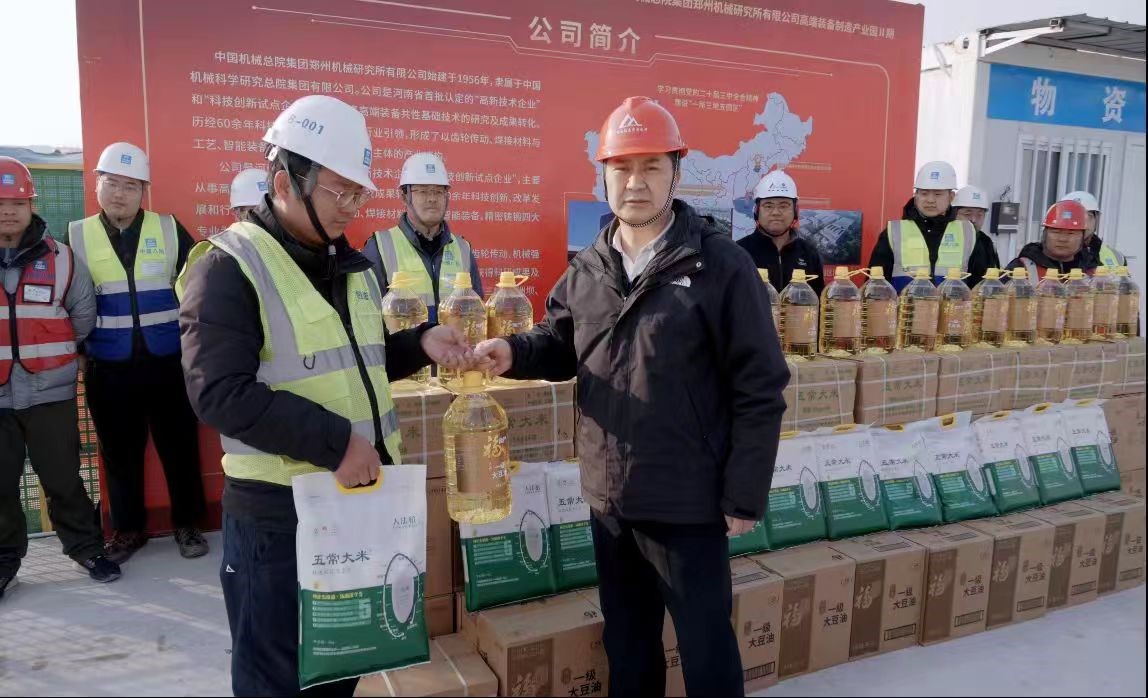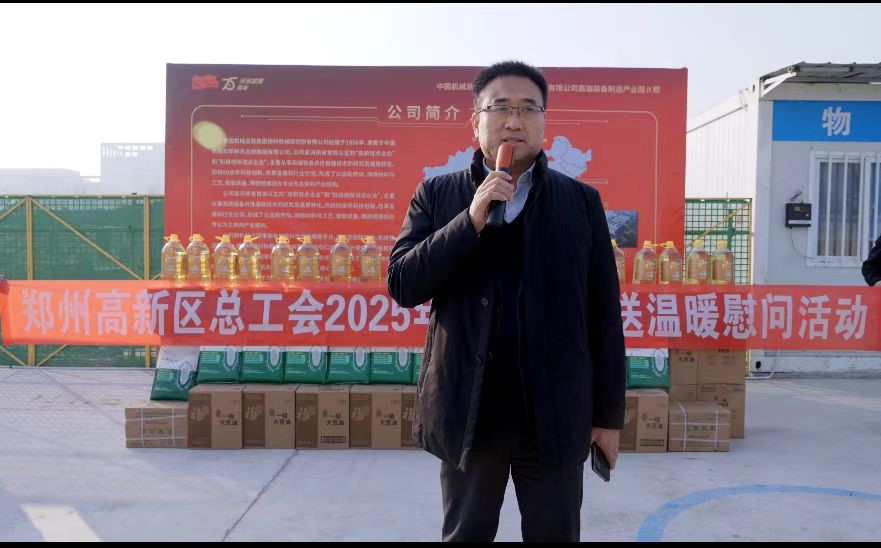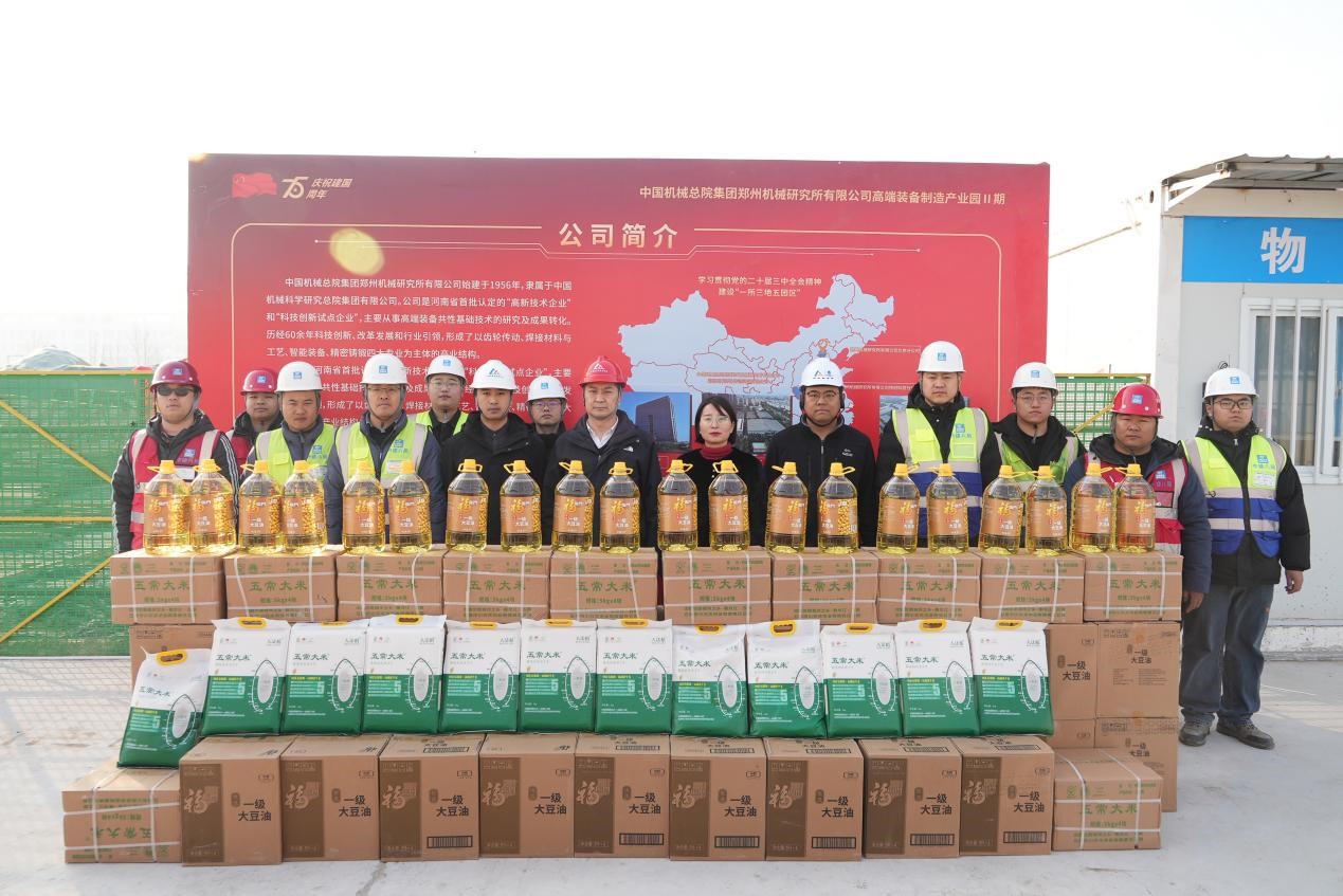 1月21日上午,中建八局郑州机械研究所有限公司高端装备制造产业园Ⅱ期项目迎来春节前送温暖慰问活动,郑州高新区党工委副书记王德敏、区总工会主席谢连生、区总工会女工委主任刘锐到项目慰问,表达了对项目一线辛勤建设者的感谢和节日问候。