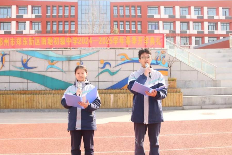 春风送暖,万物复苏,乙巳蛇年的春天悄然而至。在春回大地、生机盎然的美好时节,心怀对美好未来的向往,2024年2月17日上午,郑州市郑东新区南塘初级中学全体师生齐聚操场,隆重举行2024--2025学年春季开学典礼。仪式由九三班朱俊翰和李牧洋主持。
