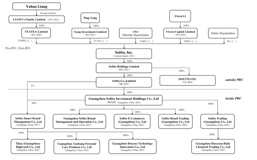 另外,蓝鲸新闻记者观察发现,据招股书披露,广州市天吻娇颜化妆品有限公司是上市公司Softto, Inc.的重要关联方,同时也是其核心OEM制造商和供应商。该公司在Softto的业务运营中占据关键地位,2023年其采购占比高达96.6%,显示出Softto对天吻娇颜的高度依赖。