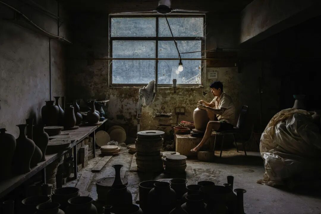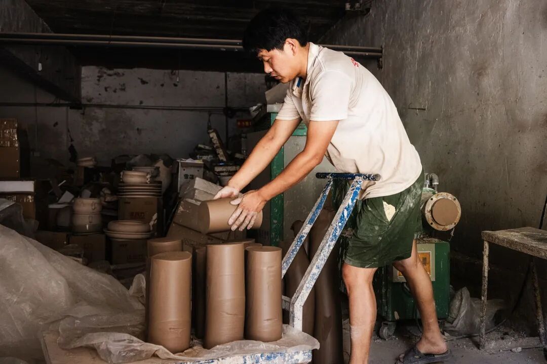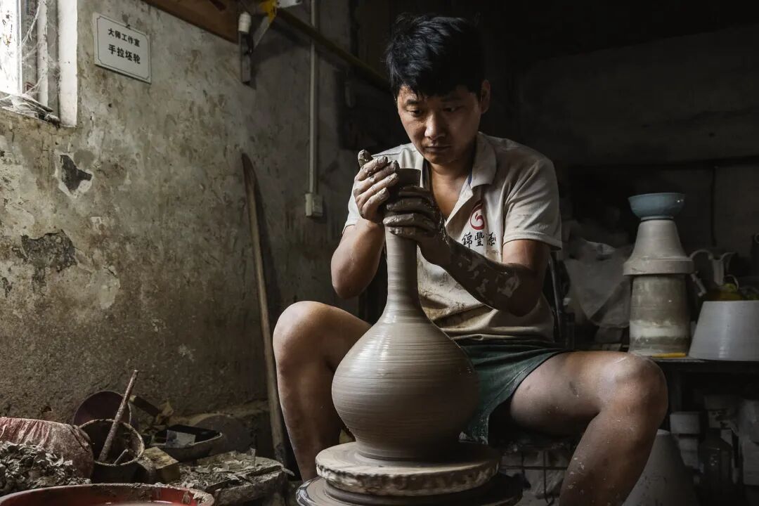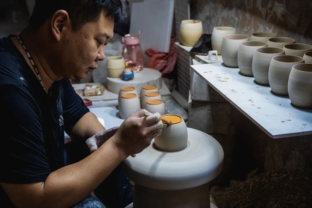 修坯-手拉坯轮:上板-晾坯-旋坯-旋底-抹坯-炕坯-设计制作饰件,执著、坚守、精进,用娴熟技术不断追求极致与完美