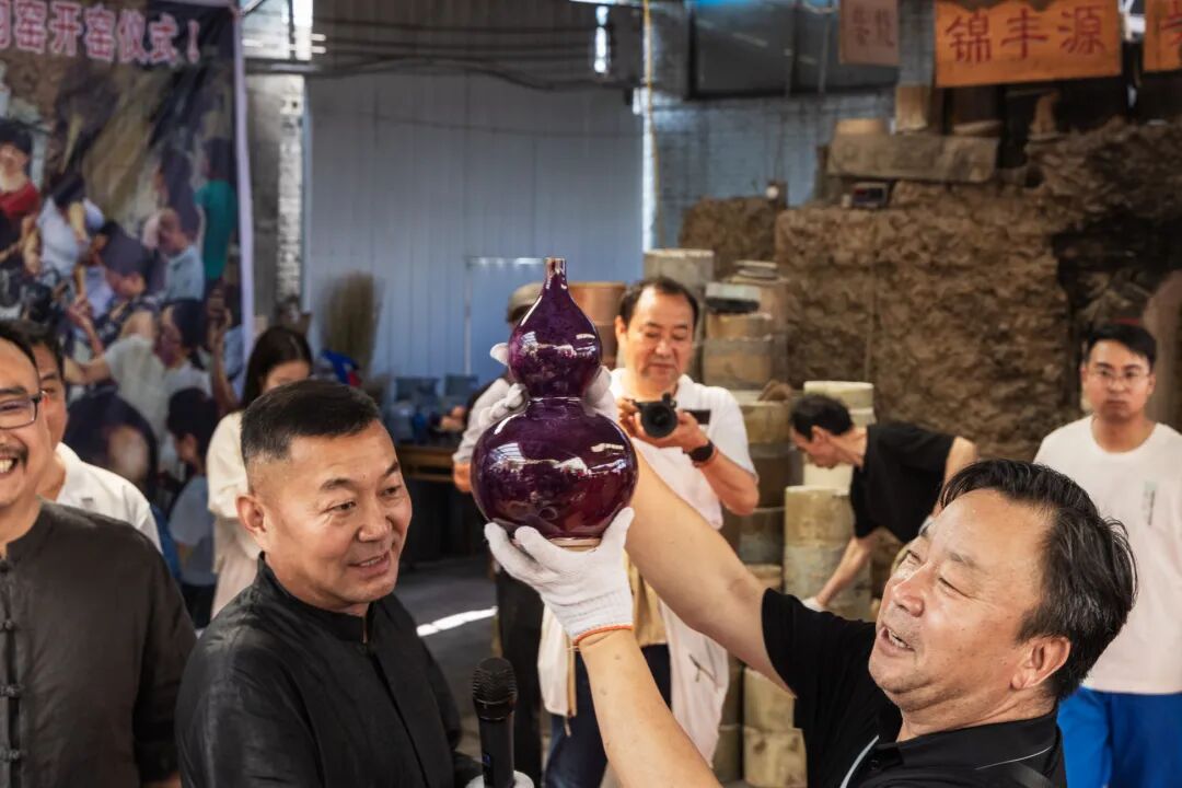 开窑:千变万化的窑变效果,形成了色彩变幻无穷的神奇:红里透紫、紫中藏青、青中寓白、白中泛红,五彩渗化,相映生辉。钧瓷的窑变釉色是任何美术大师也不可能设计、描绘出来的,“钧瓷无对,窑变无双”便是对钧瓷窑变的形象说明。