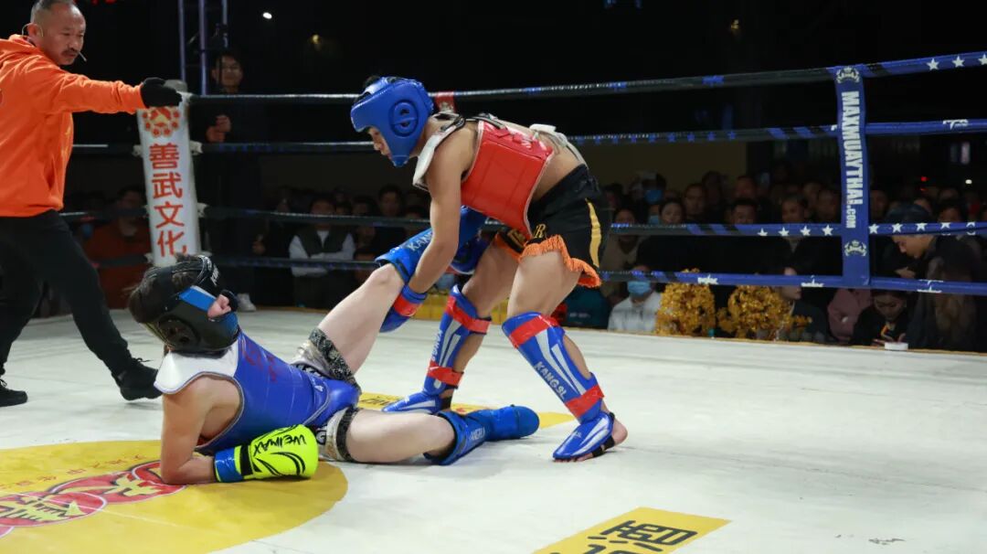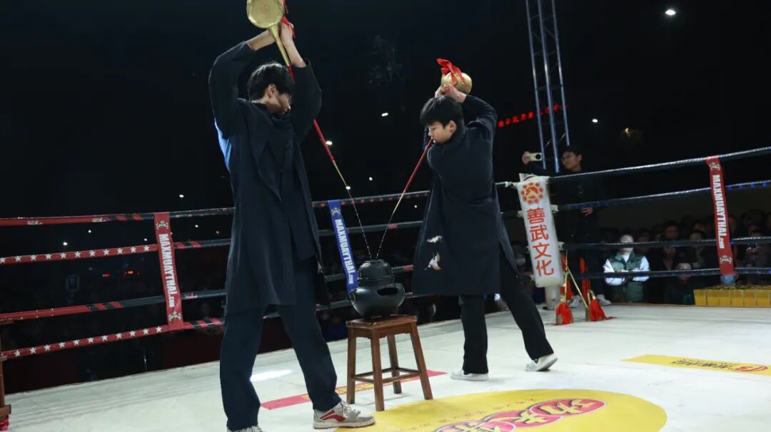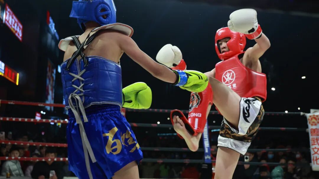 当晚最引人注目的当属拳击台上的激烈角逐。八组拳手展开了精彩对决,他们在台上全力拼搏,展现出了坚韧的毅力和高超的技艺。其中,最小的选手年仅 13 岁,但他在台上的表现却毫不逊色,眼神中充满了坚定和自信,每一次出拳都充满力量,让人们看到了武术新生代的崛起和希望。