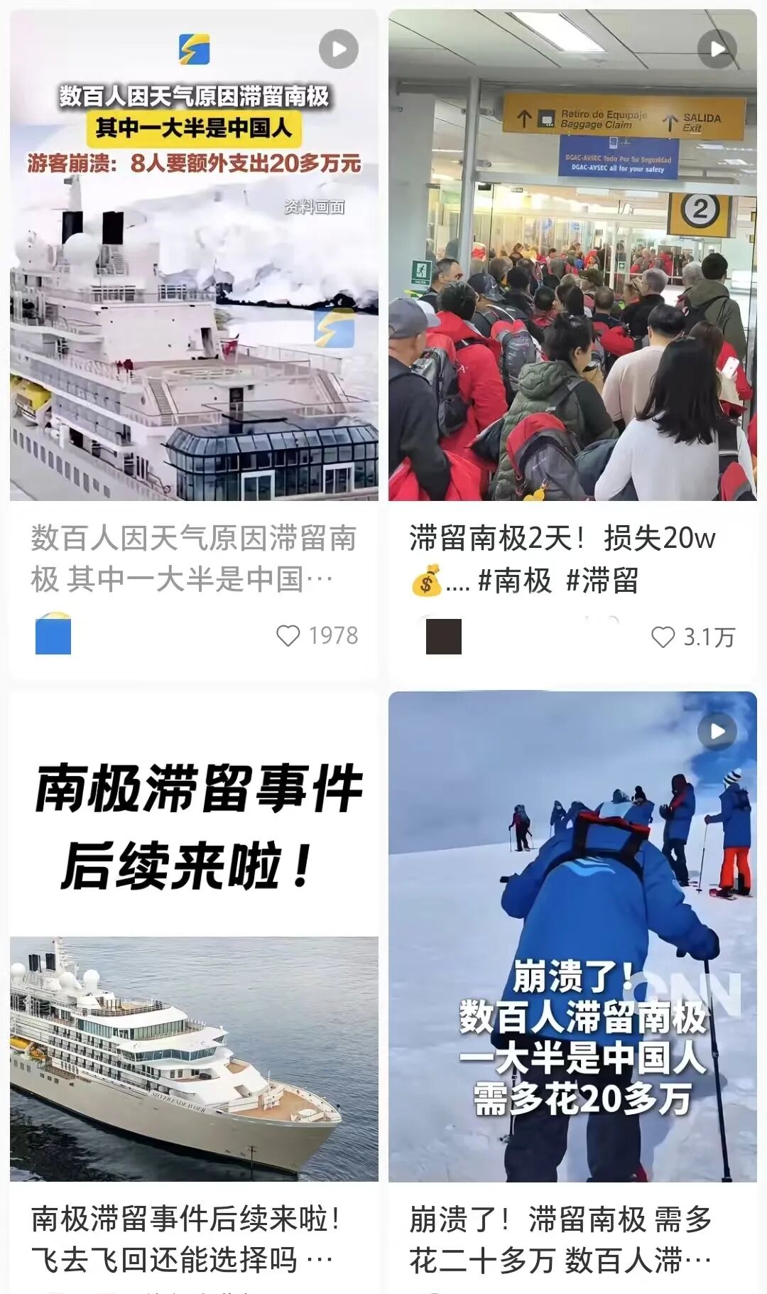 特别是春节期间,去南极过春节都成为了一种新潮流。以至于当有意外情况发生时,“数百名游客滞留南极”就有一大半是中国人。