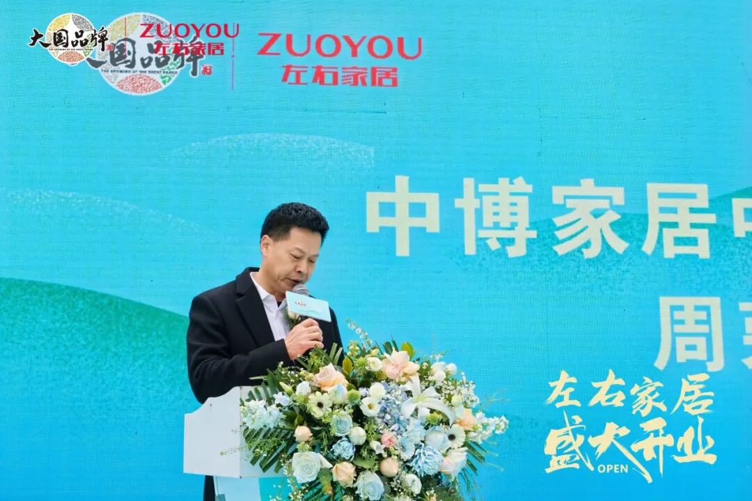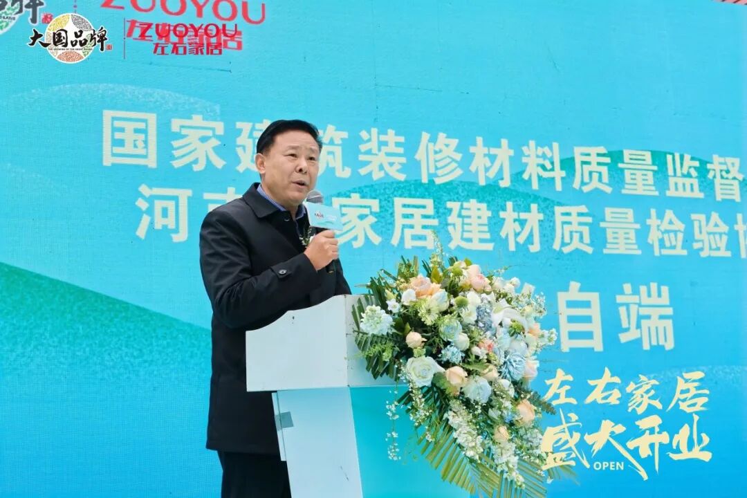 在开业仪式上,河南省家居建材质量检验协会主任张自端、中博家居中心总经理周荣标、左右家居董事长助理兼海外事业部总经理黄元浩、左右品牌幸福大使杨澜、左右家居海外品牌经销商罗汉、左右家居终端委员会会长兼河南郑州左右家居总经理单兵等领导嘉宾先后上台致辞,对左右家居中博家居中心独立店的盛大开业表示热烈祝贺与美好祝愿。
