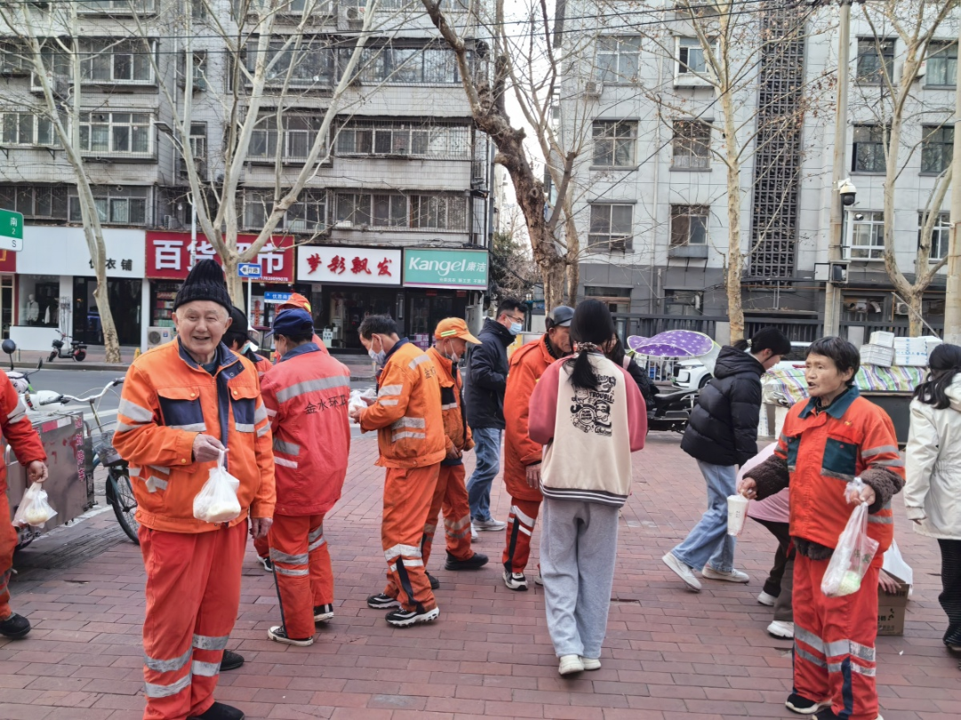清晨6时许,城市尚未完全苏醒,一群小小志愿者已经整装待发。他们携带着精心准备的热气腾腾的包子、豆浆、油条、菜角等早餐,迎着料峭的春风,来到了城市“美容师”——环卫工人的工作区域。在金水区劳卫路上,几位环卫工人正挥舞着扫帚,认真清扫着落叶和垃圾。他们身穿醒目的橙色工作服,脸上挂着淡淡的微笑,尽管工作艰辛,但他们对城市的付出从不言苦。