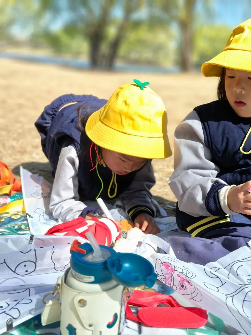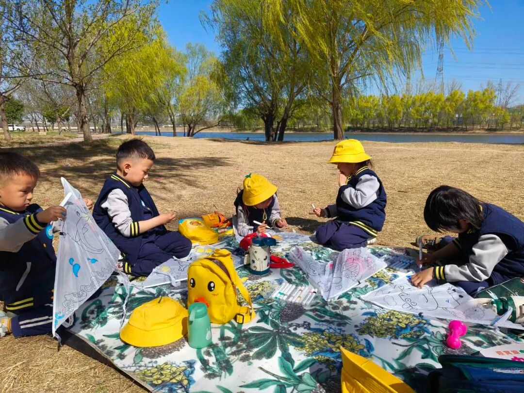 野餐结束后孩子们体验了一项特别的活动——画风筝。经过一番努力,孩子们终于完成了自己的风筝作品。看着五彩斑斓的风筝,大家都兴奋不已,迫不及待地想要把它们放飞到蓝天中。